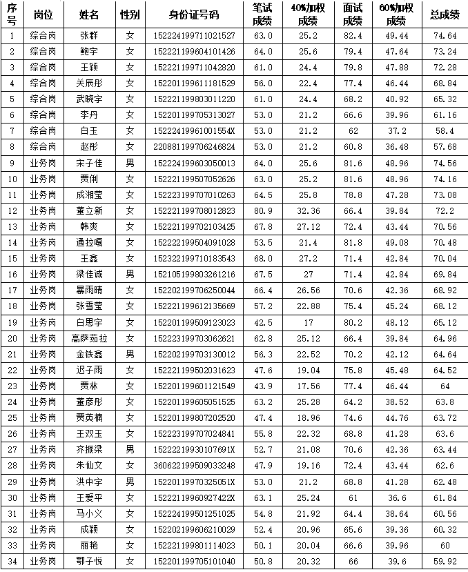 附件:烏蘭浩特市農(nóng)村信用合作聯(lián)社2019-2020年校園招聘總成績
