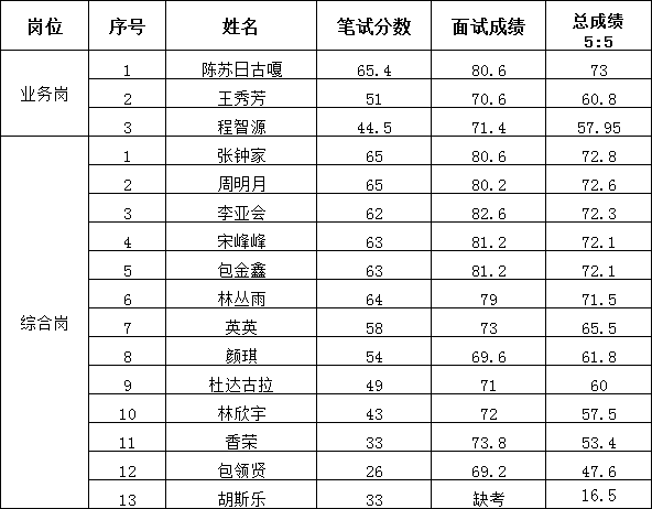 霍林郭勒市農(nóng)村信用合作社考生成績匯總表
