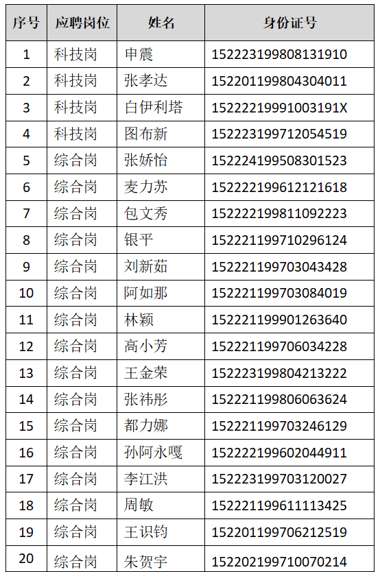 經(jīng)過現(xiàn)場資格初審,以下人員入圍筆試環(huán)節(jié),現(xiàn)公布如下(名單):